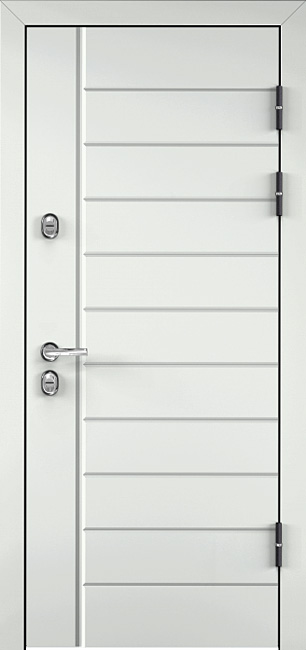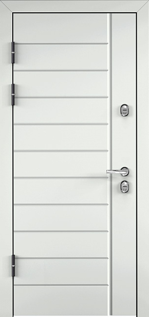 Эта белоснежная входная дверь с линиями №30 станет стильным и надежным элементом для любого интерьера. Благодаря отделке из панелей МДФ с ПВХ-покрытием, дверь выглядит элегантно и обладает высокой устойчивостью к внешним повреждениям. Внешний вид дверного полотна дополнен утонченными линиями, что придает ей современный, лаконичный вид. Прочный каркас из профильных труб 50х25 мм и лист металла толщиной 2 мм обеспечивают отличную защиту и долгий срок службы. Два контура резинового уплотнителя эффективно защищают от шума и холода, создавая комфорт в помещении. Замки Просам и Мосрентген с тремя ригелями гарантируют надежную безопасность. Дополнительно можно заказать зеркала, стеклопакеты и кованые элементы, что делает дверь универсальной для разных дизайнерских решений. Квартирная дверь входная белоснежного цвета с линиями №30 от производителя: быстрое изготовление и монтаж в Томилино, индивидуальные размеры, широкий выбор материалов и фурнитуры, официальная гарантия до 10 лет.