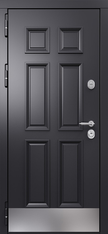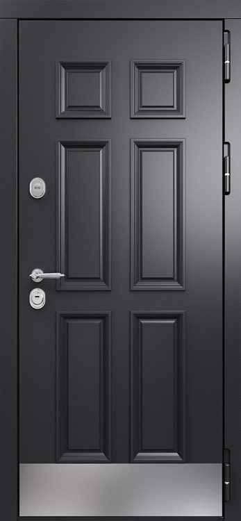 Входная дверь с МДФ №566 создана для тех, кто ценит прочность металла и уютный внешний вид в одном решении. Она одинаково хорошо вписывается в частный дом, квартиру или офис, подчеркивая солидность пространства и обеспечивая надежную защиту. Каркас и полотно собраны из профильных труб, усиленных ребрами жесткости, а стальной лист толщиной 2 мм гарантирует устойчивость к взлому и длительный срок службы. С обеих сторон дверь облицована МДФ панелями с ПВХ-покрытием, что делает поверхность более устойчивой к истиранию и мелким повреждениям, сохраняя привлекательность даже при интенсивной эксплуатации. Панели легко очищаются и не выгорают на солнце, благодаря чему дверь подходит и для уличной установки. Два контура уплотнения надежно защищают от сквозняков и посторонних запахов, а при необходимости можно дополнительно усилить конструкцию тепло- и шумоизоляцией. Модель №566 сочетает в себе сдержанный дизайн и функциональность, делая ее практичным выбором для самых разных помещений. Входная дверь с МДФ №566 от производителя: быстрое изготовление и монтаж в Томилино, индивидуальные размеры, широкий выбор материалов и фурнитуры, официальная гарантия до 10 лет.