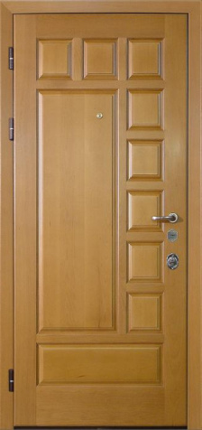 Дверь в частный дом входная №45 сочетает надёжность металлоконструкции с продуманной отделкой, рассчитанной на длительную эксплуатацию. Каркас и полотно выполнены из профильных труб с листом стали толщиной 2 мм, а система рёбер жёсткости обеспечивает устойчивость к механическим воздействиям. Важное преимущество — наличие терморазрыва в коробке и полотне, благодаря чему снижаются теплопотери и исключается появление конденсата при перепадах температур. Снаружи дверь защищена порошковым термонапылением, устойчивым к влаге, морозу и ультрафиолету, что делает её практичным решением для установки на улице. Внутри используется МДФ-плита, сохраняющая привлекательный вид и удобство ухода. Двойной контур резиновых уплотнителей дополнительно защищает помещение от сквозняков. Такая дверь подходит не только для загородного дома, но и для квартиры или офиса, сочетая строгий внешний вид с комфортом и долговечностью. Дверь в частный дом входная №45 от производителя: быстрое изготовление и монтаж в Томилино, индивидуальные размеры, широкий выбор материалов и фурнитуры, официальная гарантия до 10 лет.