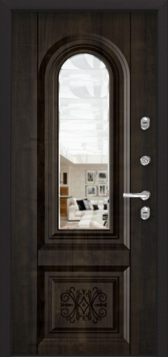 Дверь тёплая входная в частный дом №49 создана для тех, кто ценит надёжность и практичность без лишних компромиссов. Конструкция из профильных труб и стали толщиной 2 мм обеспечивает прочность и устойчивость к взлому, а двойной контур уплотнителя защищает от сквозняков и влаги. Особенность модели — встроенное зеркало, которое не только добавляет удобства, но и визуально расширяет пространство прихожей. Снаружи и внутри дверь отделана МДФ-накладками, материалом, который хорошо переносит повседневные нагрузки, не боится царапин и сохраняет привлекательный вид долгие годы. Замковая система сочетает сувальдный и цилиндровый механизмы от российских производителей, что делает вход максимально безопасным. Модель подходит для установки как в частный дом, так и в квартиру или офис, а возможность комбинировать отделку и дополнять конструкцию стеклопакетами или ковкой открывает простор для индивидуального дизайна. Дверь теплая входная в частный дом №49 от производителя: быстрое изготовление и монтаж в Томилино, индивидуальные размеры, широкий выбор материалов и фурнитуры, официальная гарантия до 10 лет.