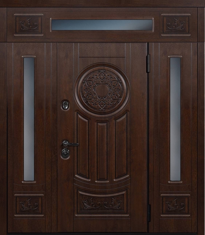Эта нестандартная парадная дверь с фрамугой №6 — отличный выбор для тех, кто ценит элегантность и долговечность. Внешняя и внутренняя отделка из МДФ придает дверям стильный и современный вид, а также защиту от механических повреждений. МДФ устойчива к царапинам и вмятинам, что делает дверь идеальной для долгосрочной эксплуатации. Каркас из профильной трубы 50х25 мм и лист металла толщиной 2 мм обеспечивают прочность и надежность, а ребра жесткости из профильных труб гарантируют дополнительную устойчивость. В двери установлены блокираторы, два контура уплотнителей из резины, что повышает звуко- и теплоизоляцию. Замки от известных производителей, таких как Просам и Мосрентген, обеспечат надежную защиту. Возможность комбинировать отделку, добавлять зеркало, стеклопакет или кованые элементы позволяет легко адаптировать дверь под любые предпочтения. Нестандартная парадная дверь с фрамугой №6 от производителя: быстрое изготовление и монтаж в Томилино, индивидуальные размеры, широкий выбор материалов и фурнитуры, официальная гарантия до 10 лет.