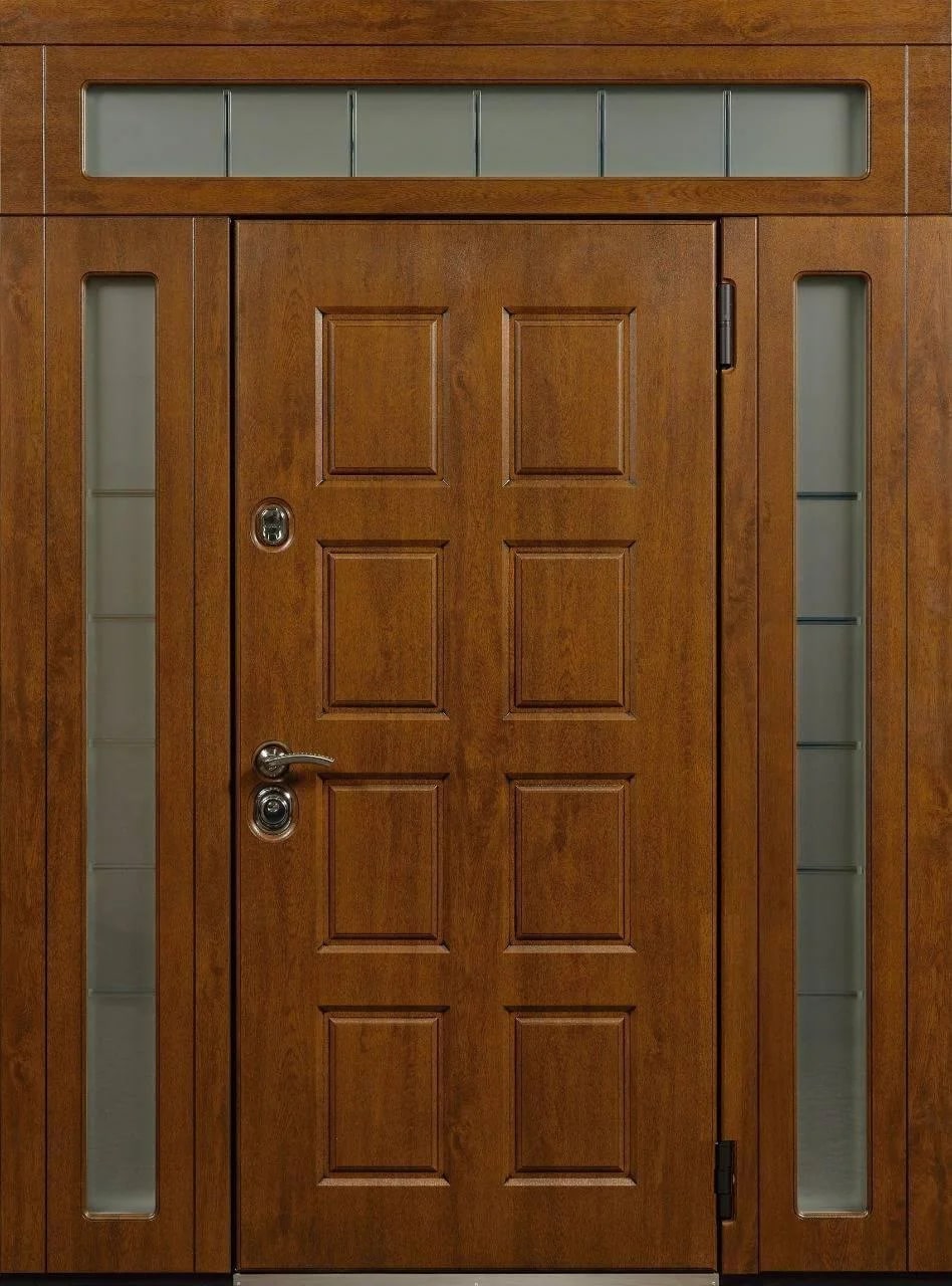 Элитная парадная дверь с фрамугой №4 станет не только защитой вашего дома, но и его визитной карточкой. Ее внешний вид, сочетающий плиту МДФ с ПВХ-покрытием, выглядит современно и гармонично, сохраняя стойкость к внешним воздействиям, таким как царапины и вмятины. Конструкция, выполненная из профильной трубы 50х25 мм и металлического листа толщиной 2 мм, гарантирует долговечность и прочность. Благодаря фрамуге дверь пропускает свет, добавляя пространству легкости. Встроенные замки с ригелями обеспечивают надежную защиту. Возможность выбора направления открывания и комбинирования отделок делает эту модель универсальной для любых интерьеров. Также можно дополнить дверное полотно зеркалом или стеклопакетом, а если требуется, заменить замки на более высокозащищенные модели. Элитная парадная дверь с фрамугой №4 от производителя: быстрое изготовление и монтаж в Томилино, индивидуальные размеры, широкий выбор материалов и фурнитуры, официальная гарантия до 10 лет.