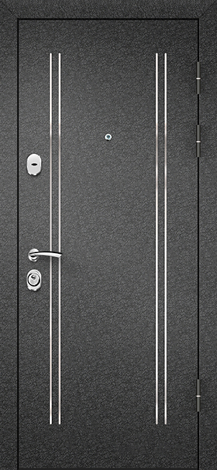 Дверь металлическая в порошке №59 — надежное решение для квартир, офисов и подъездов, где требуется прочная конструкция и аккуратный внешний вид. Снаружи используется молотковое напыление, которое не боится механических повреждений и долго сохраняет насыщенный цвет, а внутренняя поверхность отделана ламинатом, создающим ощущение уюта и подчеркивающим практичность модели. Каркас собран из профильной трубы 50х25 мм, усилен ребрами жесткости и листом стали толщиной 2 мм, что придает двери устойчивость к силовым нагрузкам. Дополнительную защиту обеспечивают два замка: верхний сувальдный «Просам» и нижний цилиндровый «Мосрентген», оба с тремя ригелями. Два контура резинового уплотнения помогают справляться со сквозняками, а при желании дверь можно укомплектовать шумо- и теплоизоляцией. Модель №59 легко адаптируется под любые требования: возможна комбинация отделок, установка зеркала, стеклопакета или декоративной ковки. Дверь металлическая в порошке №59 от производителя: быстрое изготовление и монтаж в Томилино, индивидуальные размеры, широкий выбор материалов и фурнитуры, официальная гарантия до 10 лет.