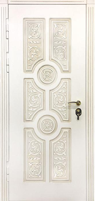 Дверь уличная с терморазрывом №49 — это надежное решение для частных домов и коттеджей, которое обеспечит комфорт и защиту от внешних факторов. С терморазрывом в коробке и полотне, эта дверь исключает проникновение холода, сохраняя тепло в доме и предотвращая появление конденсата. Внешняя и внутренняя отделка выполнена с использованием накладки МДФ, что придает двери привлекательный вид и долговечность, стойкость к механическим повреждениям и атмосферным воздействиям. Ковка, как элемент декора, добавляет изысканности и подчеркивает индивидуальность. Металлическая конструкция с толщиной полотна 1,5 мм и каркасом из профильных труб гарантирует прочность и устойчивость. Уплотнение с тремя контурами магнитного герметика и высокая шумо- и теплоизоляция на основе пенопласта делают дверь идеальной для использования в уличных условиях. Возможность замены замков и добавления стеклопакетов или кованых элементов позволяет индивидуализировать дверное решение под любые потребности. Дверь уличная с терморазрывом №49 от производителя: быстрое изготовление и монтаж в Томилино, индивидуальные размеры, широкий выбор материалов и фурнитуры, официальная гарантия до 10 лет.