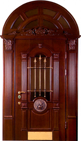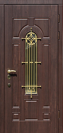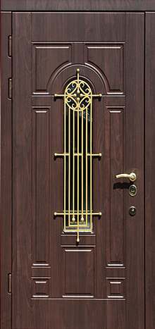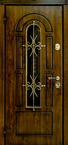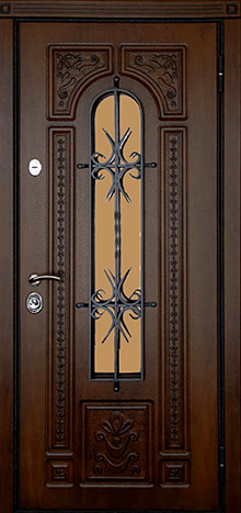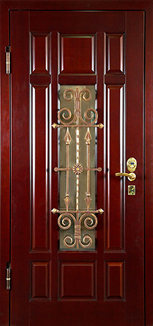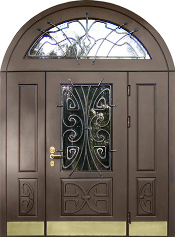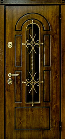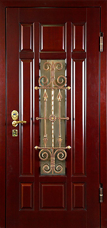 Входная дверь со стеклом и ковкой для загородного дома №16