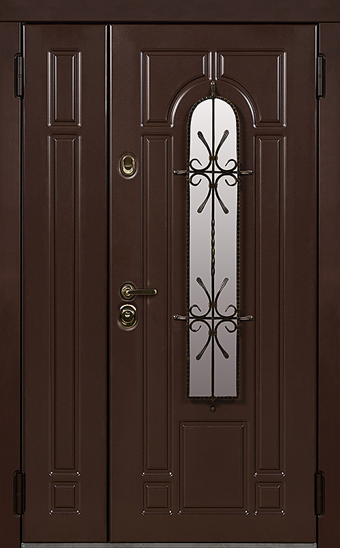 Эта металлическая двухстворчатая дверь с арочным стеклопакетом №15 представляет собой идеальный баланс между эстетикой и прочностью. Арочное стекло добавляет в её дизайн утончённость, а ковка в декоре придаёт изысканный, но в то же время крепкий и надёжный вид. Плита МДФ, используемая как для внешней, так и для внутренней отделки, не только сохраняет прекрасный внешний вид, но и устойчива к механическим повреждениям. Металлическая двухстворчатая дверь с арочным стеклопакетом №15 от производителя: быстрое изготовление и монтаж в Томилино, индивидуальные размеры, широкий выбор материалов и фурнитуры, официальная гарантия до 10 лет.