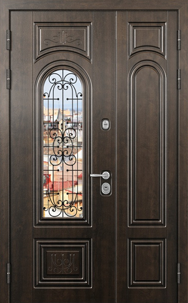 Двупольная стальная дверь со стеклопакетом и кованым узором №24 станет отличным выбором для тех, кто ценит не только безопасность, но и стиль. Внешняя и внутренняя отделка выполнены из МДФ, что придает двери элегантный и современный вид, а также обеспечивает высокую устойчивость к механическим повреждениям и износу. Стеклопакет и кованые элементы добавляют изысканности и уникальности, при этом сохраняя прочность конструкции. Двупольная стальная дверь со стеклопакетом и кованым узором №24 от производителя: быстрое изготовление и монтаж в Томилино, индивидуальные размеры, широкий выбор материалов и фурнитуры, официальная гарантия до 10 лет.