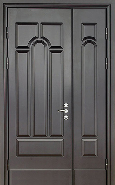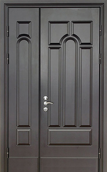 Металлическая двухстворчатая дверь для дома цвета графит №27 – это стильное и надежное решение для вашего жилья. Внешняя и внутренняя отделка выполнены из МДФ, что придает двери изысканный вид и увеличивает её стойкость к механическим повреждениям. Цвет графит придаёт двери современный и элегантный оттенок, который легко впишется в интерьер как частных домов, так и современных офисов. Металлическая двухстворчатая дверь для дома цвета графит №27 от производителя: быстрое изготовление и монтаж в Томилино, индивидуальные размеры, широкий выбор материалов и фурнитуры, официальная гарантия до 10 лет.