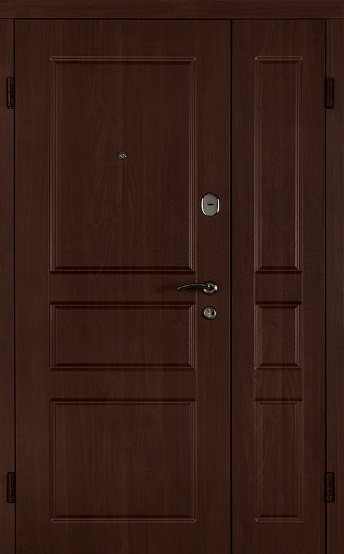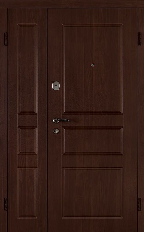 Коричневая входная полуторная дверь с филенчатой створкой №4 – это надежное и стильное решение для вашего дома или офиса. Внешняя и внутренняя отделка из МДФ с ПВХ обеспечивает долговечность и устойчивость к повреждениям, сохраняя при этом элегантный внешний вид. Прочные материалы конструкции, такие как профильная труба 50х25 мм и лист металла толщиной 2 мм, гарантируют стабильность и безопасность. Ребра жесткости из профильных труб 40х25 мм усиливают дверное полотно, а уплотнение с двумя контурами надежно защищает от внешних факторов. Несмотря на отсутствие терморазрыва, в двери реализованы терморазрывы в коробке и полотне, что помогает улучшить теплоизоляцию. Возможность выбора дополнительных опций, таких как шумоизоляция, делает эту дверь универсальной для различных условий эксплуатации. Коричневая входная полуторная дверь с филенчатой створкой №4 от производителя: быстрое изготовление и монтаж в Томилино, индивидуальные размеры, широкий выбор материалов и фурнитуры, официальная гарантия до 10 лет.