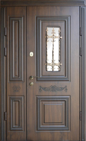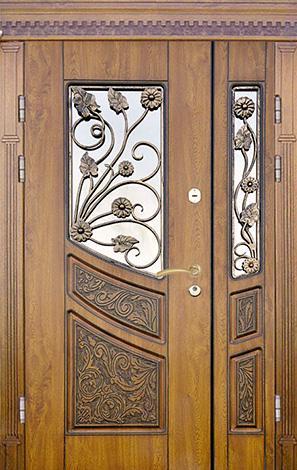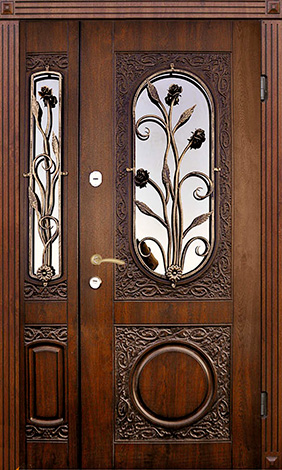 Дверь металлическая со стеклом и ковкой №7