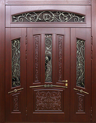Эксклюзивная глянцевая дверь в частный дом с нестандартной фрезеровкой №24