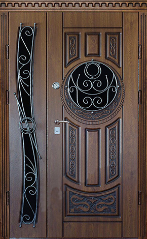 Дверь металлическая со стеклом и ковкой №7
