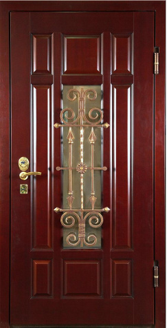 Входная дверь со стеклопакетом и патиной для загородного дома белая №29