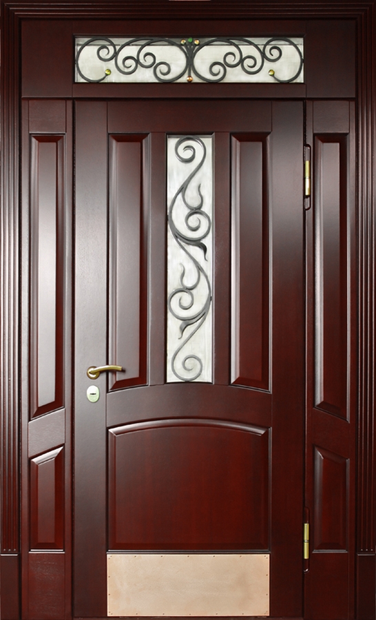 Красивая шпонированная дверь с надежной фурнитурой и ковкой "лоза" №33 идеально дополнит интерьер вашего частного дома или коттеджа. Внешняя и внутренняя отделка выполнены из натурального дерева, что придает двери элегантность и стиль. Профильная труба 50х25 мм используется для каркаса и полотна, а лист металла толщиной 2 мм и ребра жесткости из профильных труб 40х25 мм обеспечивают прочность и долговечность. Несмотря на отсутствие терморазрыва, дверь гарантирует надежную защиту и теплоизоляцию благодаря двум контурам уплотнения. Элементы ковки "лоза" придают двери особое очарование, сочетая практичность с эстетикой. Эта дверь — идеальный выбор для тех, кто ценит стиль, качество и безопасность. Красивая шпонированная дверь с надежной фурнитурой и ковкой "лоза" №33 от производителя: быстрое изготовление и монтаж в Томилино, индивидуальные размеры, широкий выбор материалов и фурнитуры, официальная гарантия до 10 лет.