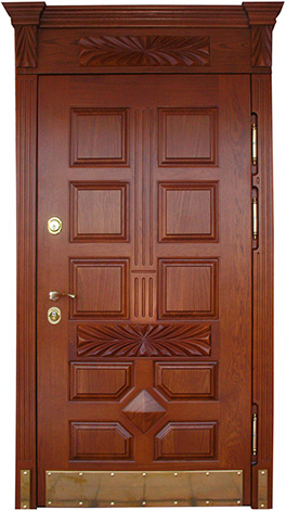 Эксклюзивная высокая входная дверь с железным отбойником №36 — это образец элегантности и функциональности, который идеально впишется в любой частный дом или коттедж. Изготовленная из массива дерева, она будет долго сохранять свой привлекательный внешний вид и устойчивость к внешним воздействиям. Прочная конструкция из профильных труб и листа металла толщиной 2 мм, усиленная ребрами жесткости, гарантирует надежность и долговечность. Терморазрыв в коробке и полотне помогает минимизировать теплопотери и защищает от перепадов температуры. Дверь оснащена высококачественными замками, что обеспечивает высокий уровень безопасности. Железный отбойник добавляет двери не только дополнительную защиту, но и стильный элемент дизайна. Эксклюзивная высокая входная дверь с железным отбойником №36 от производителя: быстрое изготовление и монтаж в Томилино, индивидуальные размеры, широкий выбор материалов и фурнитуры, официальная гарантия до 10 лет.